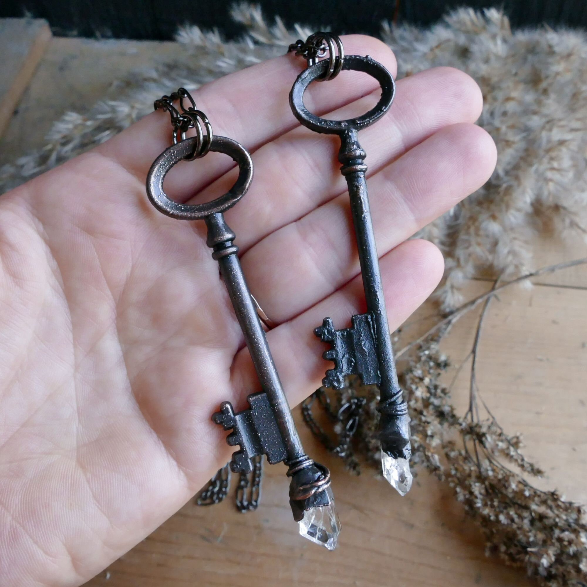 These handcrafted Skeleton Key necklaces have been electroformed in bare copper & finished in a dark, blackened copper, giving them a vintage rustic charm.