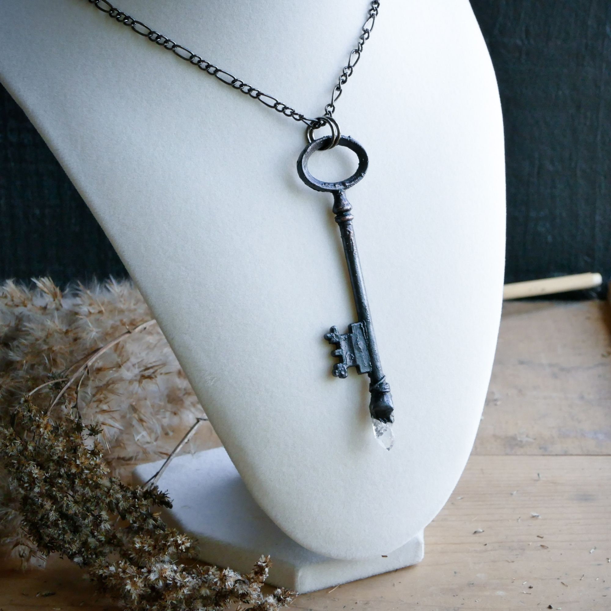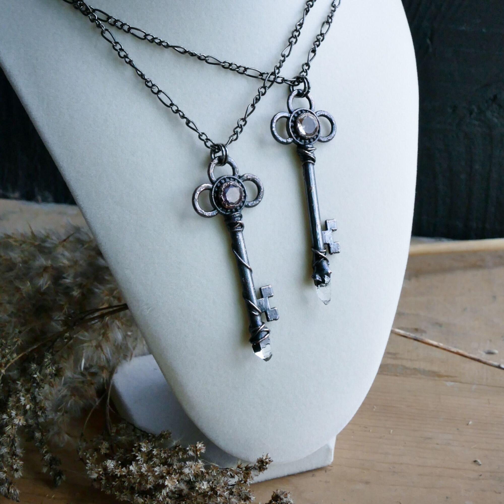 As with all my jewelry, these necklaces are handcrafted and one of a kind. Each key carries its own story. Please note, these are natural Quartz stones, each stone will vary slightly in size, shape & clarity.