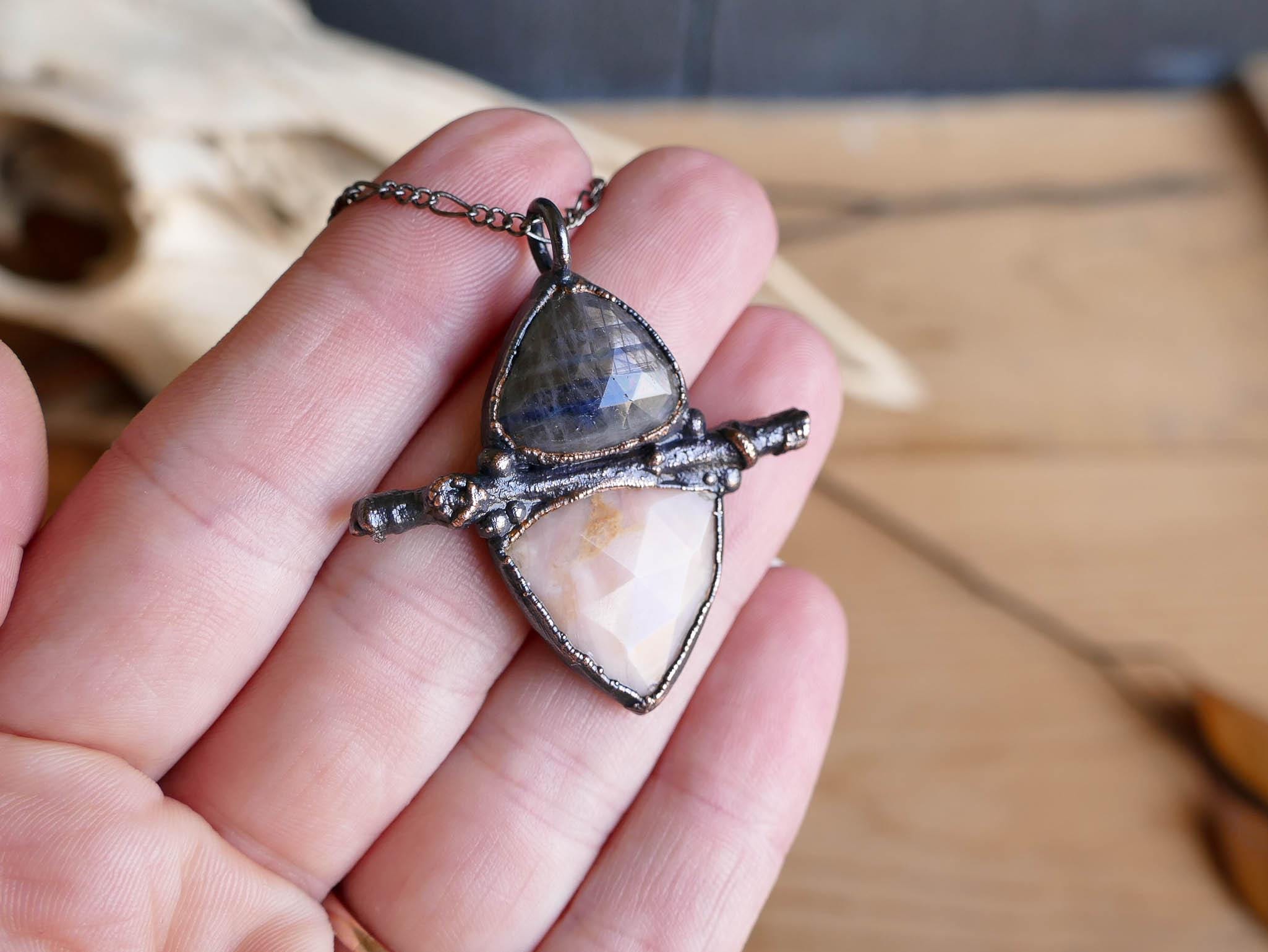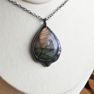 Electroforming is an intricate process of fusing copper onto another object using a low voltage charge. The copper can build up in certain areas creating unique texture throughout the piece. Each piece of jewelry is one of a kind.